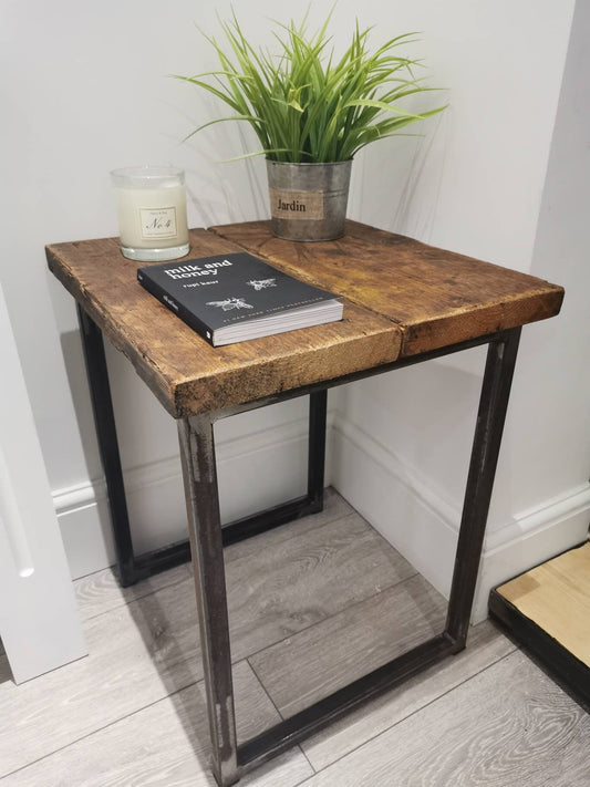 Industrial Raw Steel and Reclaimed Scaffold Board Side Table