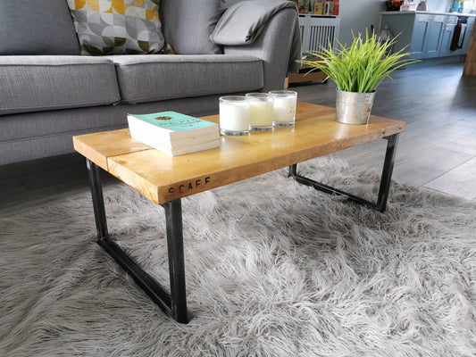 Industrial Raw Steel and Reclaimed Scaffold Board Coffee Table