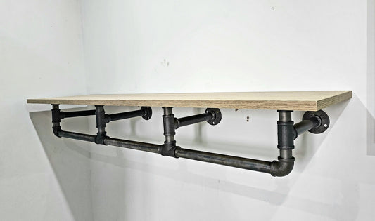 Industrial Clothes Rail with Light Oak Shelf - Urban Clothes Storage - Wardrobe