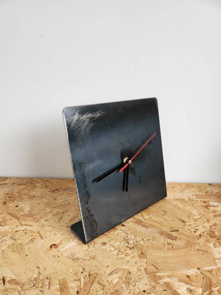 Raw Steel Standing Clock - Square Clock - Metal Clock - Industrial Clock - Desk Clock - Time Piece