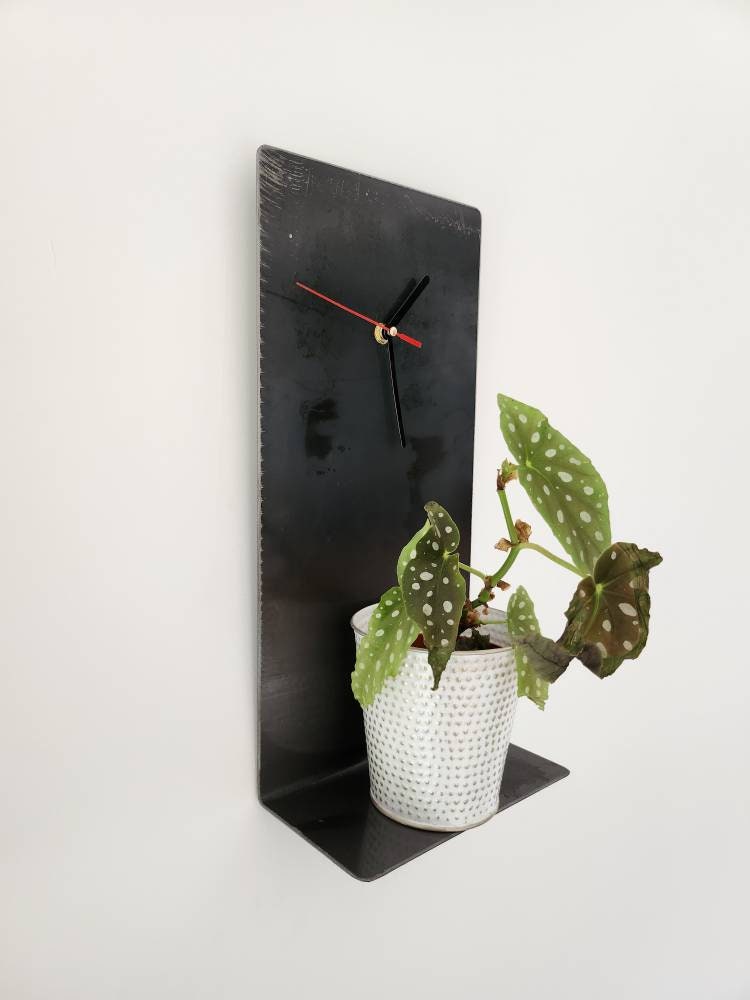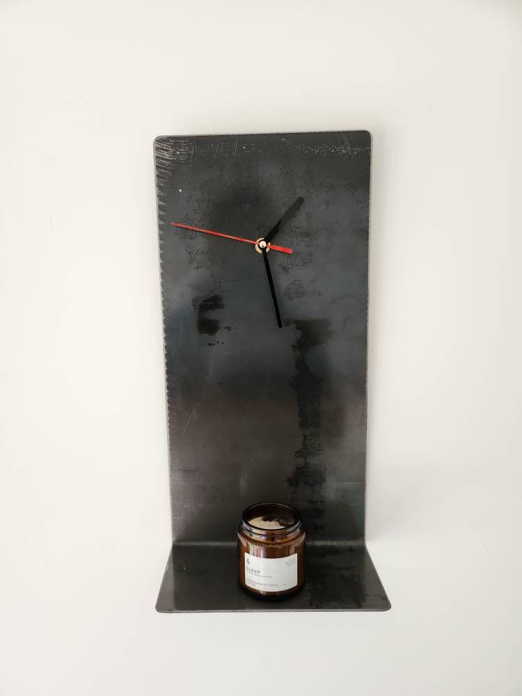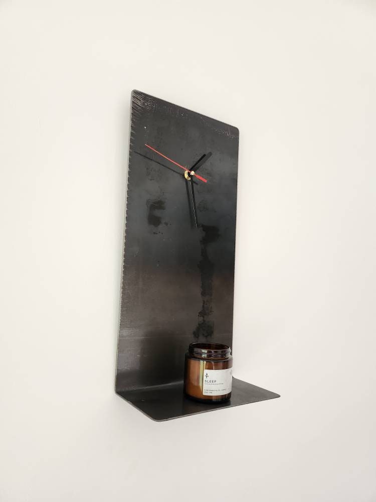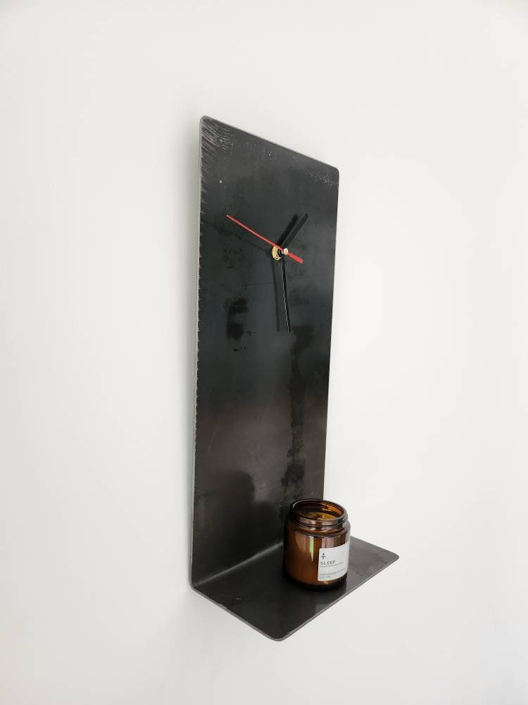 Raw Steel Wall Clock Shelf - metal Clock Shelf - Metal Clock - Industrial Clock with Shelf - Time Piece