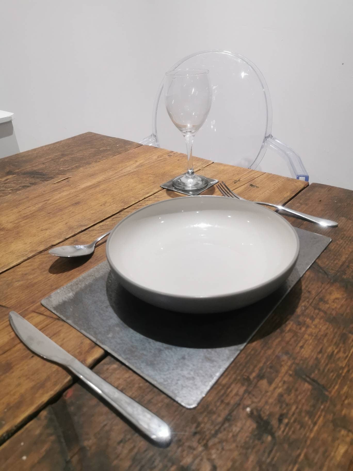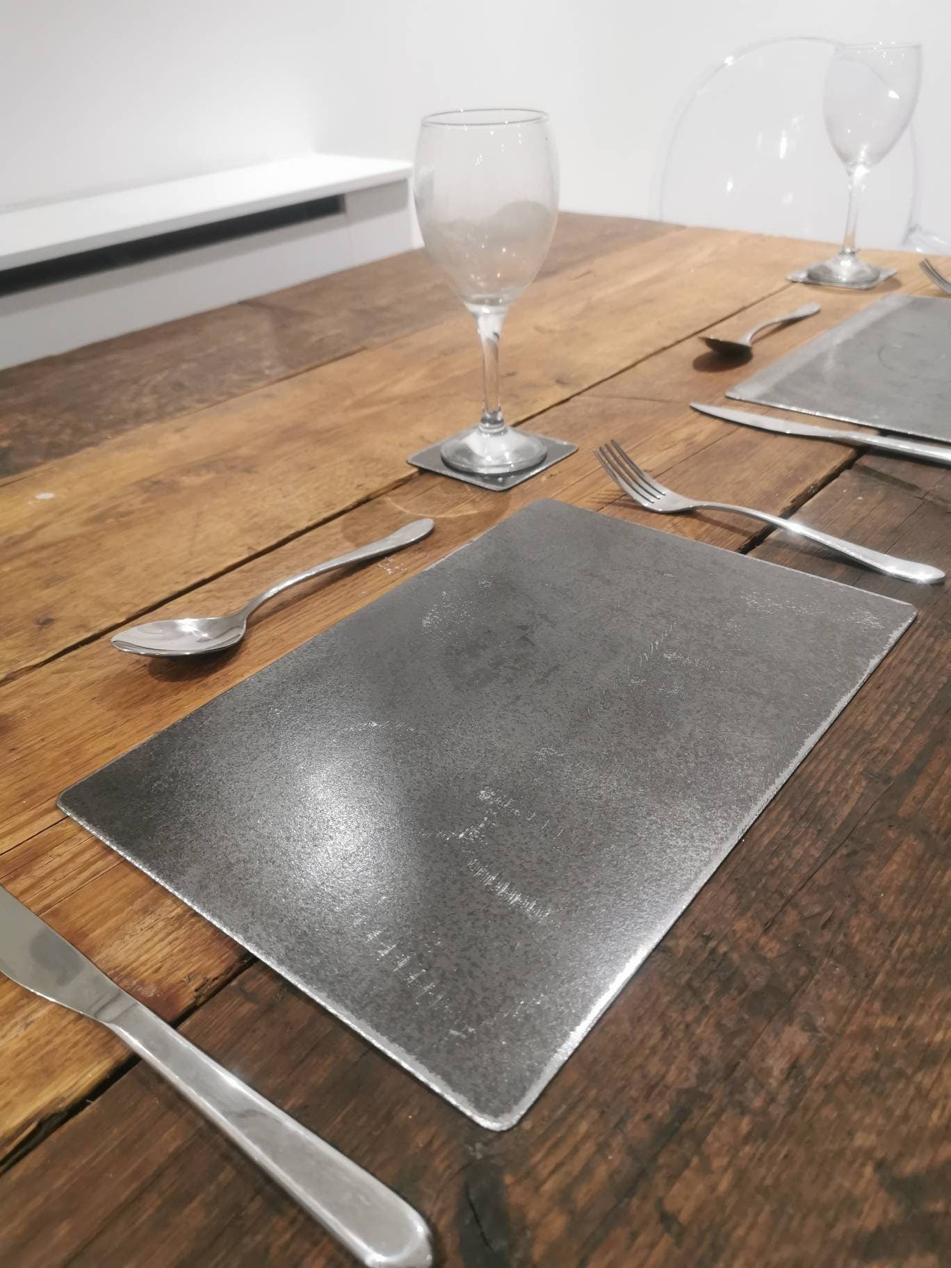These super urban, rustic Steel Industrial looking Placemats and Coasters are the in vogue accessory to complete your dining table appearance.